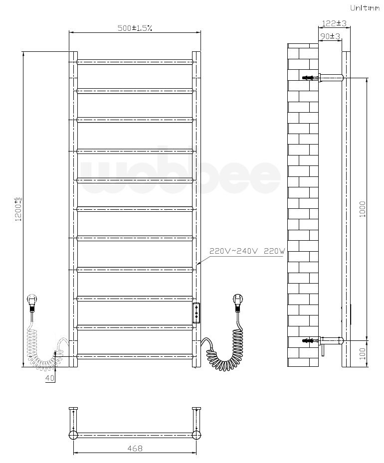 Braižyto plieno elektrinis džiovintuvas Wobbee Lymm 120x50cm