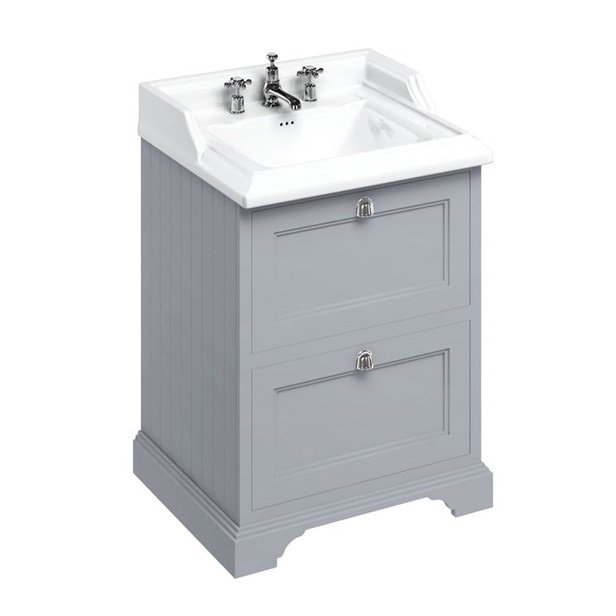Prekinis ženklas (Didžioji Britanija), kurio specializacija tik angliškos klasikos vonios kambario įranga (santechnika). Iš dalies šio prekinio ženklo asortimentas labai siauras - klasikinė, angliška vonios kambario įranga. Bet tuo pačiu Burlington Bathrooms asortimentas ir labai platus, nes apima: vonias, vandens maišytuvus, klozetus, praustuvus, dušo įrangą, rankšluosčių džiovintuvus, vonios aksesuarus ir netgi šviestuvus voniai. Labai retas prekinis ženklas, turintis tik vieną stilių savo asortimente, pristato tiek daug naujų produktų, kiek tai daro Burlington Bathrooms - kiekvienais metais sukuria naujų produktų, pristato naujus produktus ir idėjas. Burlington pilkos spalvos vonios spintelė 65cm.