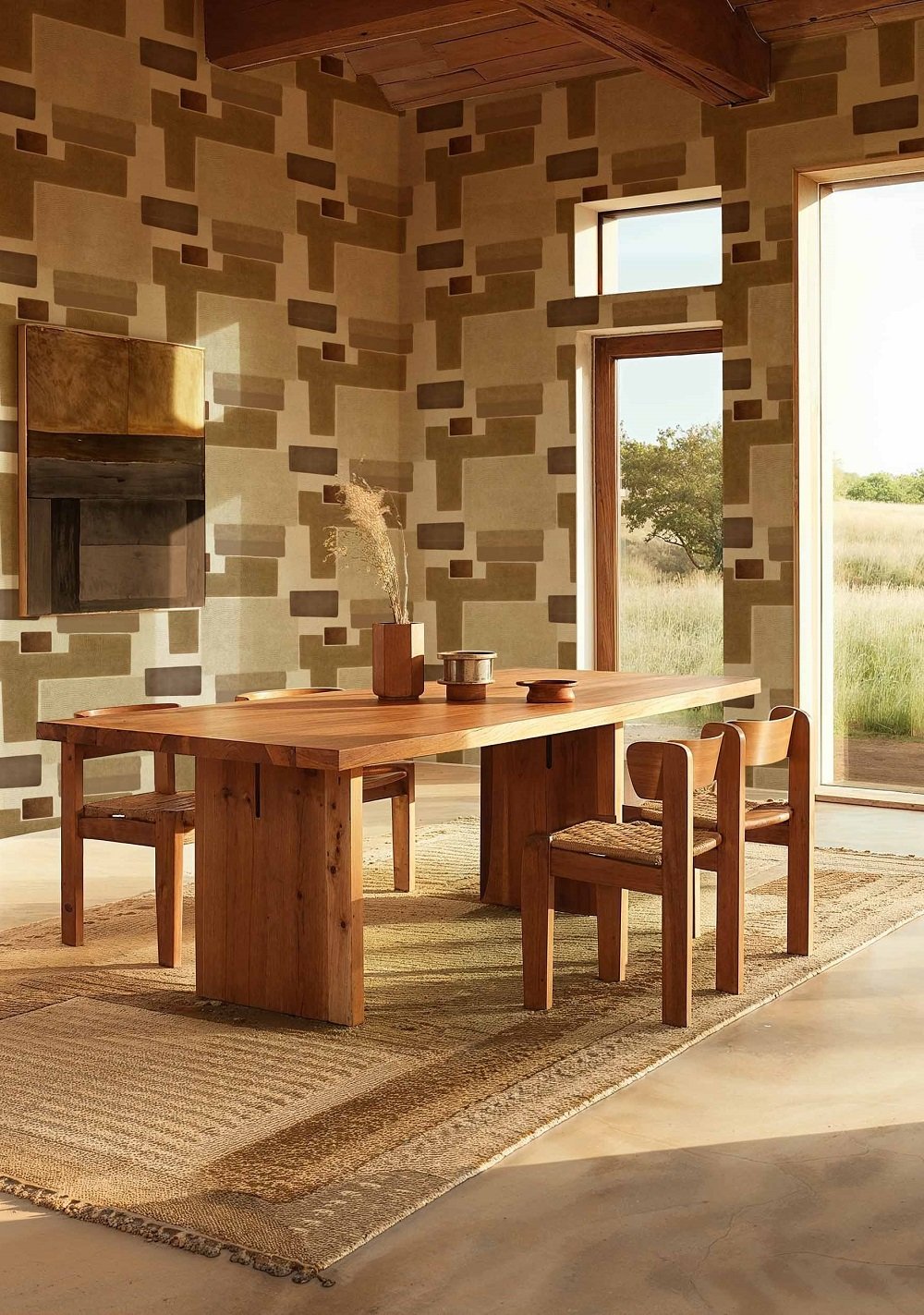 Tapetų kolekcija „Sarape“ iš Coordonné – tai išskirtiniai tapetai, kuriuose susilieja autentiška Meksikos kultūra, tradicinė tekstilė ir šiuolaikinis dizainas. Kolekcija įkvėpta Huichol ir Yaqui tautų amatų, ryškių audinių bei simbolikos, todėl šie tapetai su spalvotais raštais suteikia interjerui gyvybės, charakterio ir išskirtinumo. Coordonne tapetai valgomojo interjere Sapare kolekcija.
