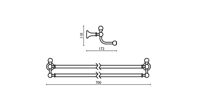 Dvigubas laikiklis 60cm FS217 | Vonios aksesuarų kolekcija „FOLIE” -prabangi klasikinio stiliaus aksesuarų į vonią kolekcija. Dekoruota skaidriais Swarovski kristalais. Taipogi turime galimybę dekoruoti šia vonios aksesuarų kolekciją juodais Swarovski kristalais. „FOLIE” kolekcijos indeliai: matinis stilkas arba balta keramika. Gamintojas „Bagno & Asocciati” (Italija). Galimos spalvos: chromas, sendintas žalvaris, auksas.