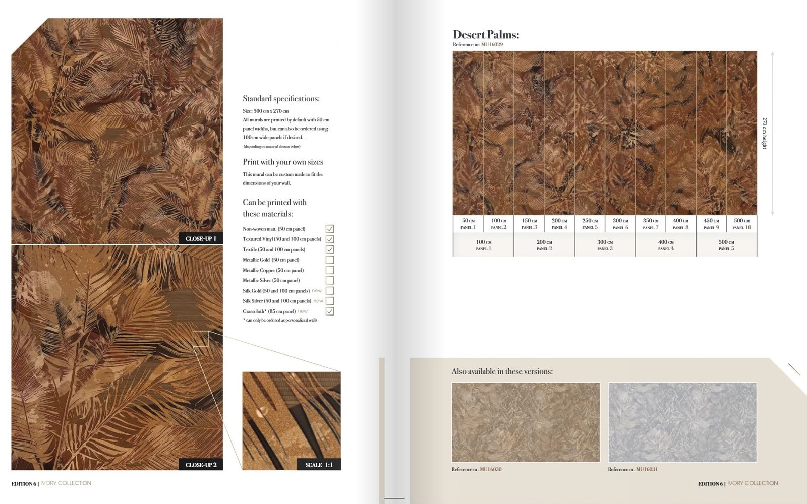 "Muance" kolekcijos fototapetus galima pasirinkti pagamintus iš šių medžiagų: