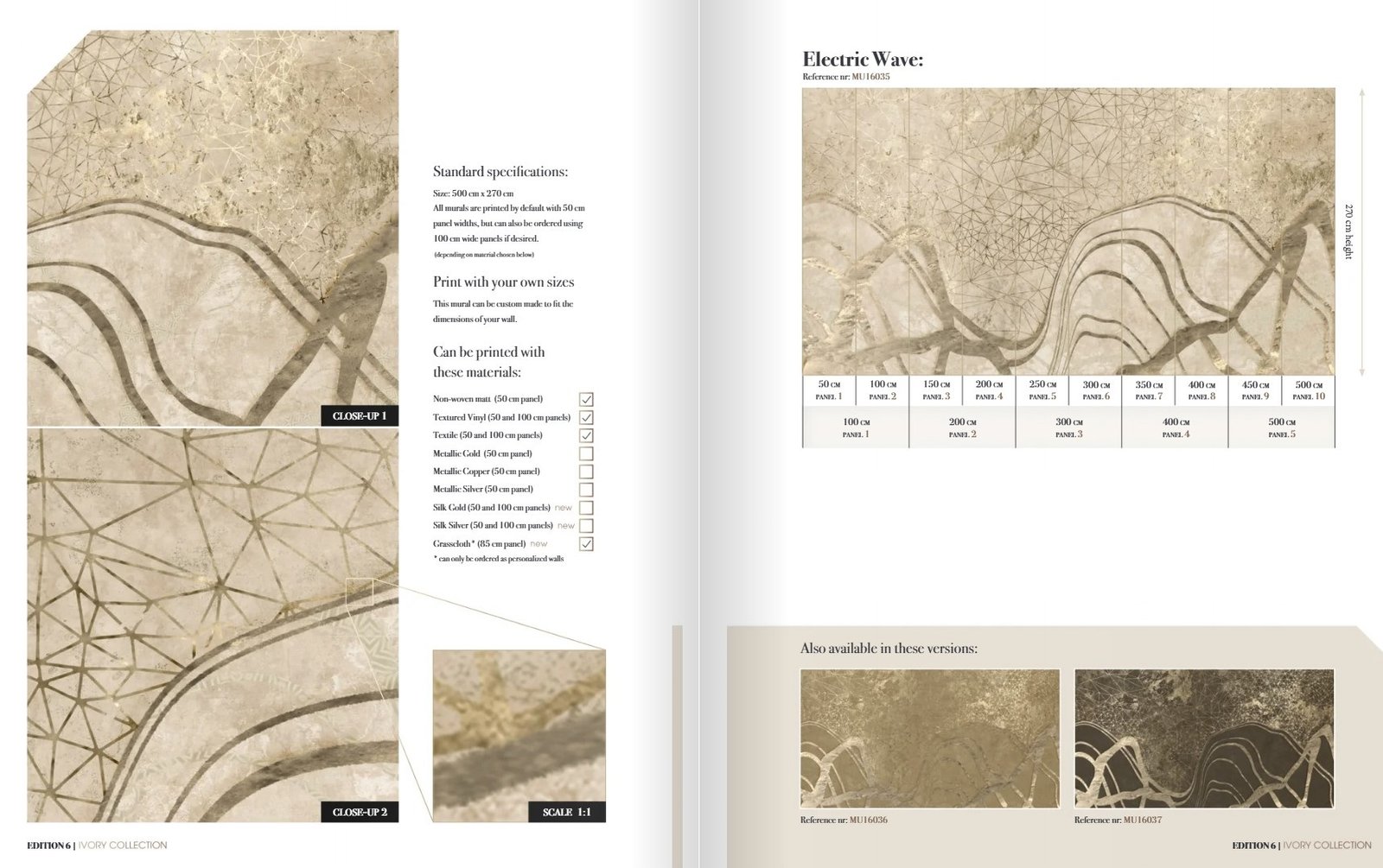 Kolekcijos dizainų įkvėpimo šaltiniai – skandinaviškos šaknys, architektūrinės linijos ir gamtos formos. Čia klasikiniai motyvai susilieja su šiuolaikiniu menu, subtiliomis tekstūromis ir natūralia spalvų palete. MUANCE 6 dizainai veikia kaip sienų grafika ar sienų meno kompozicijos, kurios kuria emocinį ryšį su erdve ir tampa vizualine interjero ašimi.