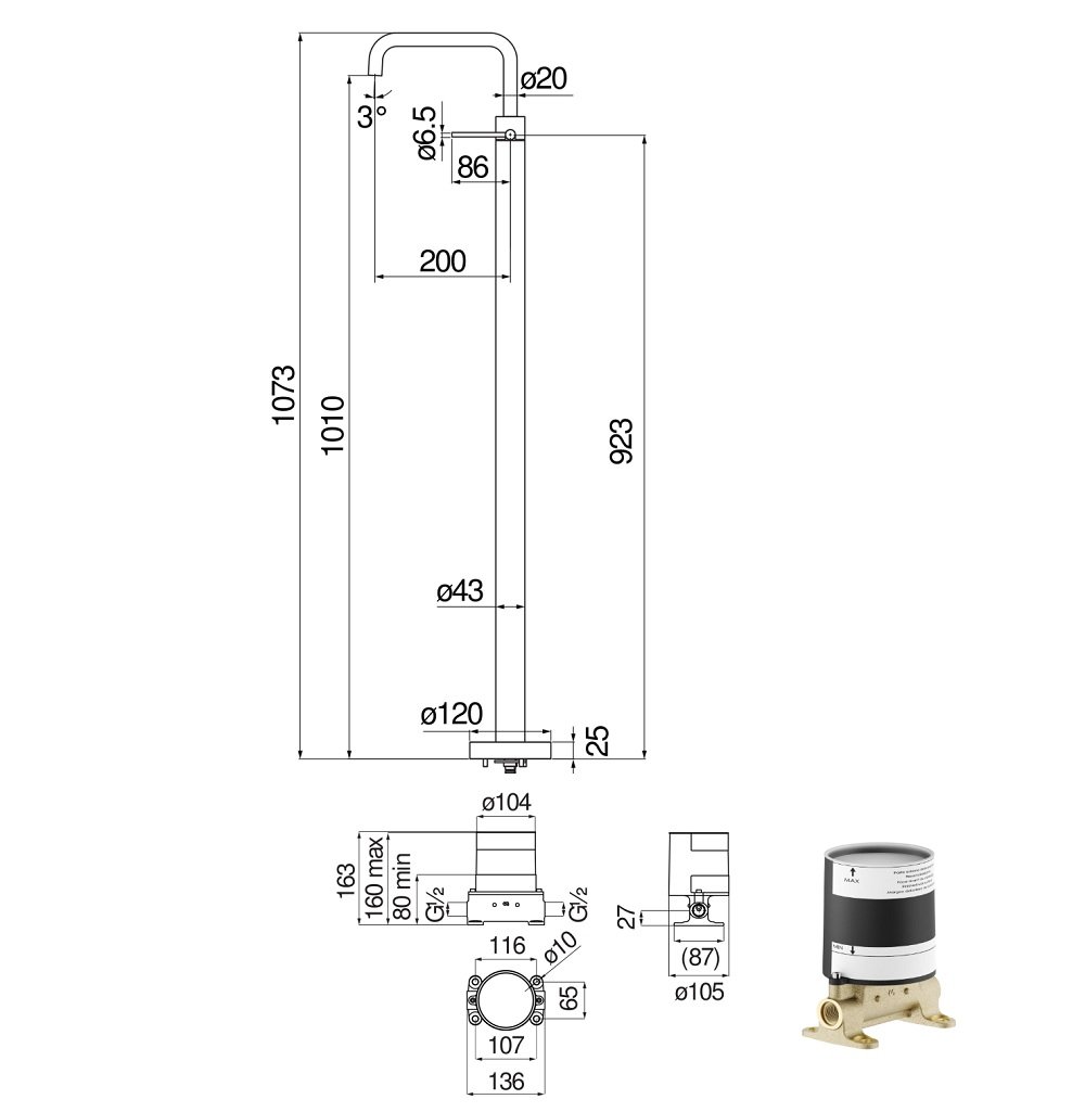 • Komplekte: praustuvo maišytuvas iš grindų su potinkine dalimi; be dugno vožtuvo;
