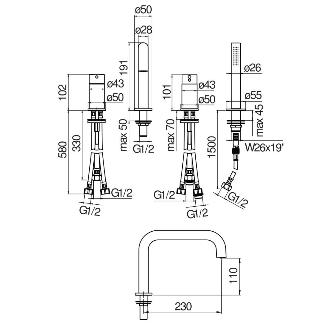 Įmontuojamas vonios maišytuvas Nobili Velis WEBK110-9VE | Nuoroda į „Velis” kolekcijos gamintojo puslapį.