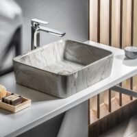 - Keramikinis, marmuro imitacijos, pastatomas praustuvas, 48x13x38 cm;