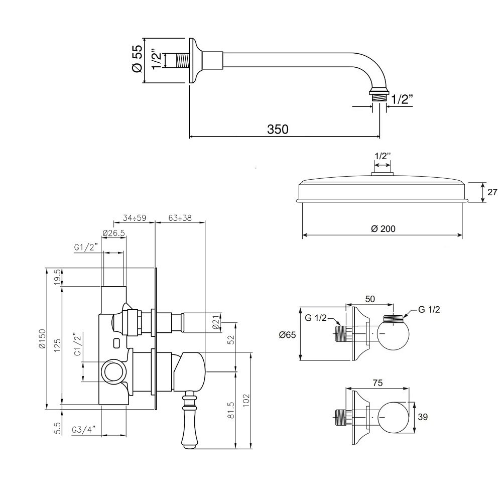 • Klasikinio stiliaus potinkinė dušo sistema;