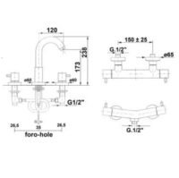 - Komplekte: 3 dalių praustuvo maišytuvas (be dugno vožtuvo); dušo maišytuvas su dušelio komplektu;