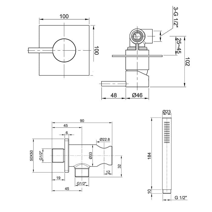 • Komplekte: maišytuvas su potinkine dalimi, rankinio dušelio komplektas;