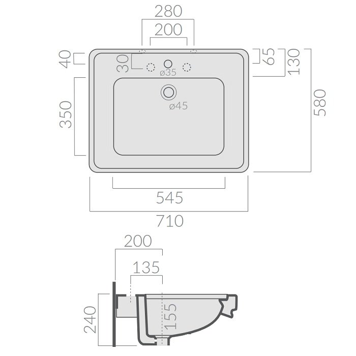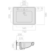 - Komplekte: praustuvas 70cm (1 skylė maišytuvui);