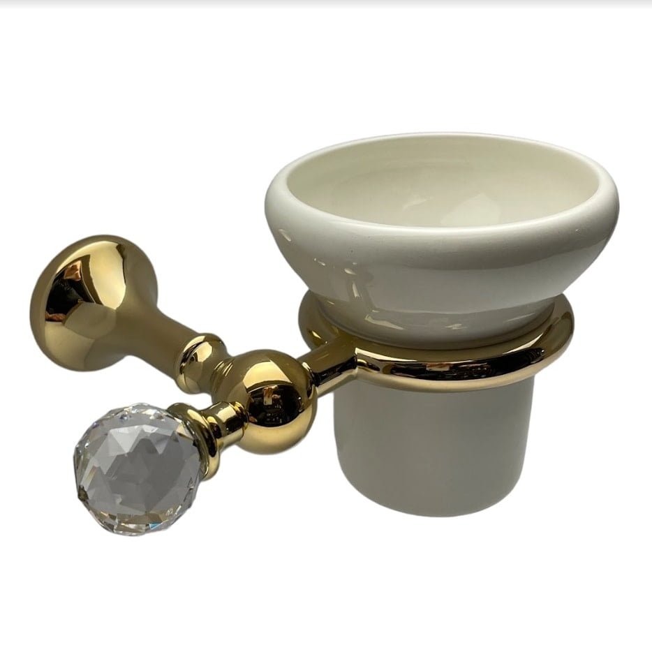 Puodelis dantų šepetėliams Swarovski FS142 | Vonios aksesuarų kolekcija „FOLIE” -prabangi klasikinio stiliaus aksesuarų į vonią kolekcija. Dekoruota skaidriais Swarovski kristalais. Taipogi turime galimybę dekoruoti šia vonios aksesuarų kolekciją juodais Swarovski kristalais. „FOLIE” kolekcijos indeliai: matinis stilkas arba balta keramika. Gamintojas „Bagno & Asocciati” (Italija). Galimos spalvos: chromas, sendintas žalvaris, auksas.
