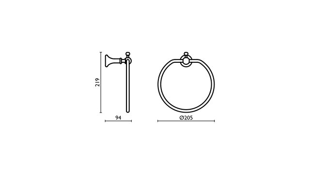 Ko gero, visų laikų populiariausia mūsų asortimento klasikinė vonios aksesuarų kolekcija. Tinkanti daugumai klasikinių vonios kambario interjerų ar tai būtų gili klasika ar klasika su moderniais elementais – „Regency” vonios aksesuarai puikia tiks. Puikus kainos, kokybės ir išvaizdos derinys. „Regency” kolekcijos indeliai gali būti matinio stilko arba baltos keramikos. Gamintojas „Bagno & Asocciati” (Italija). Galimos spalvos: chromas, sendintas žalvaris, sendintas varis, auksas. Rankšluoščių laikiklis žiedas RE207.