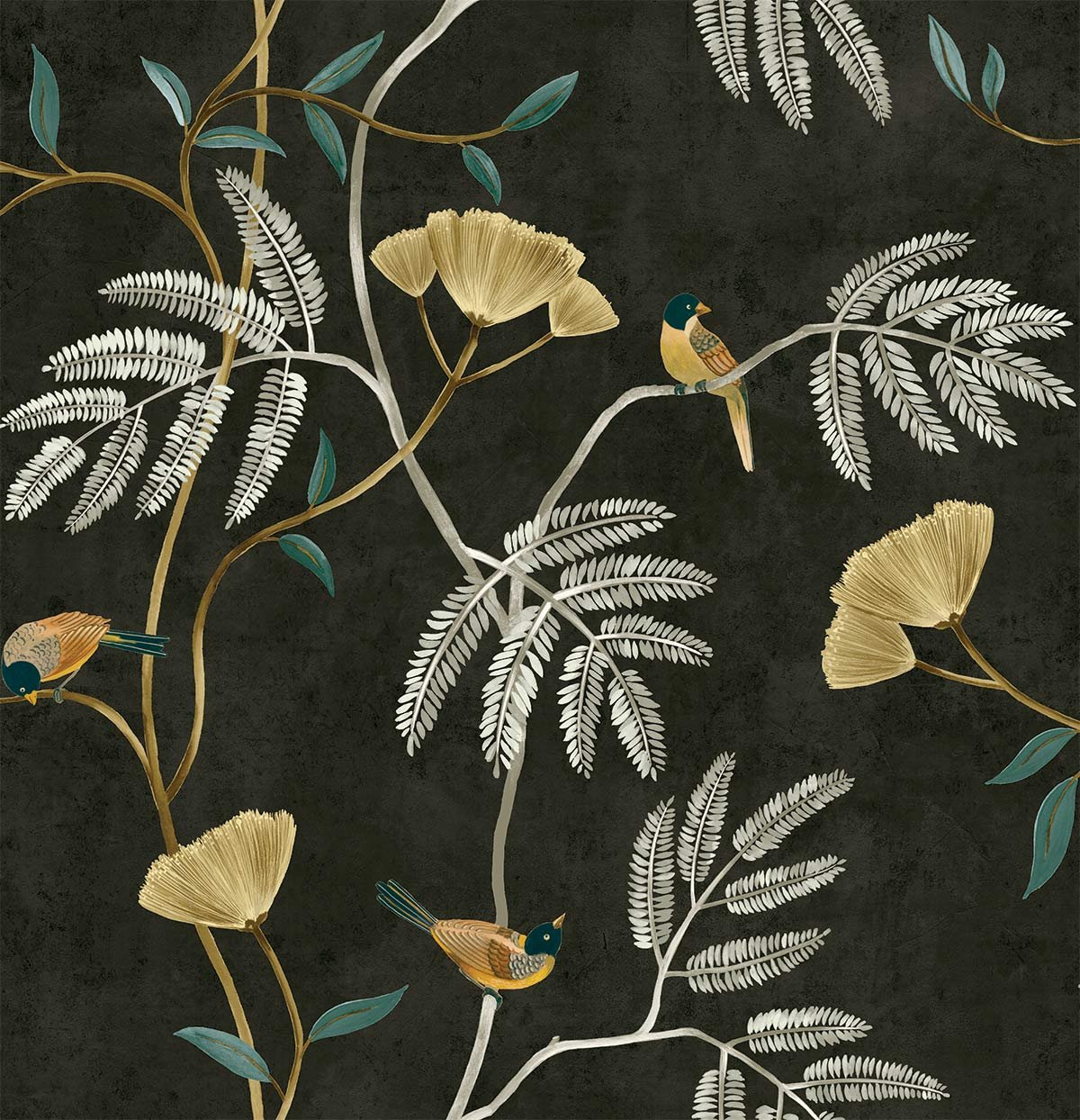 Tapetas juodu fonu su paukšteliais Chinoiserie CH30310