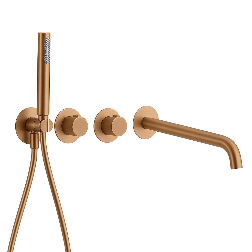 Termostatinė potinkinė vonios sistema Assen Imex, PVD spalvos, GTA052. Modernaus dizaino vandens maišytuvų kolekcija. Dėl savo aptakių, lakoniškų formų puikiai tiksianti daugumoje modernaus stiliaus vonios kambarių. Galimos spalvos: chromas; matinė juoda; šlifuotas juodas nikelis (gun metal PVD); matinė juoda; (braižyto) šlifuoto aukso PVD; (braižyto) šlifuoto vario PVD.