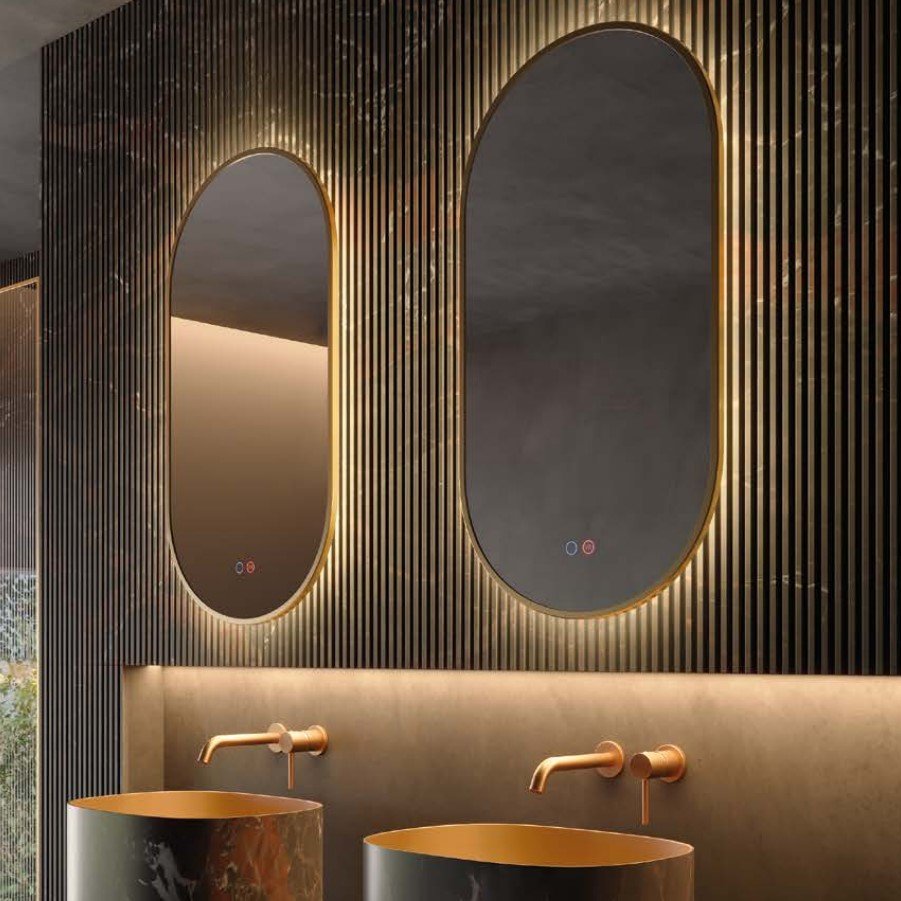 Didelis dėmesys skiriamas kokybei, ilgaamžiškumui ir detalėms – nuo pažangių medžiagų iki kruopščiai apgalvotų funkcijų. LEDIMEX filosofija – kurti produktus, kurie ne tik atitinka, bet ir pranoksta šiuolaikinio vartotojo lūkesčius. Veidrodis voniai su LED braižyto aukso rėmas Tokyo Ledimex 50x90cm.
