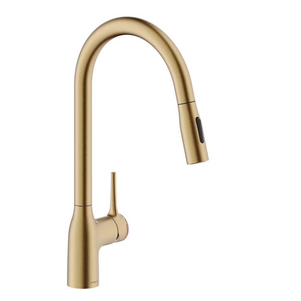 Virtuvės vandens maišytuvas ištraukiamu dušeliu Nobili Mania brushed gold pvd spalva cu128137