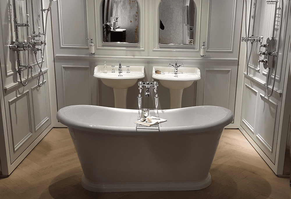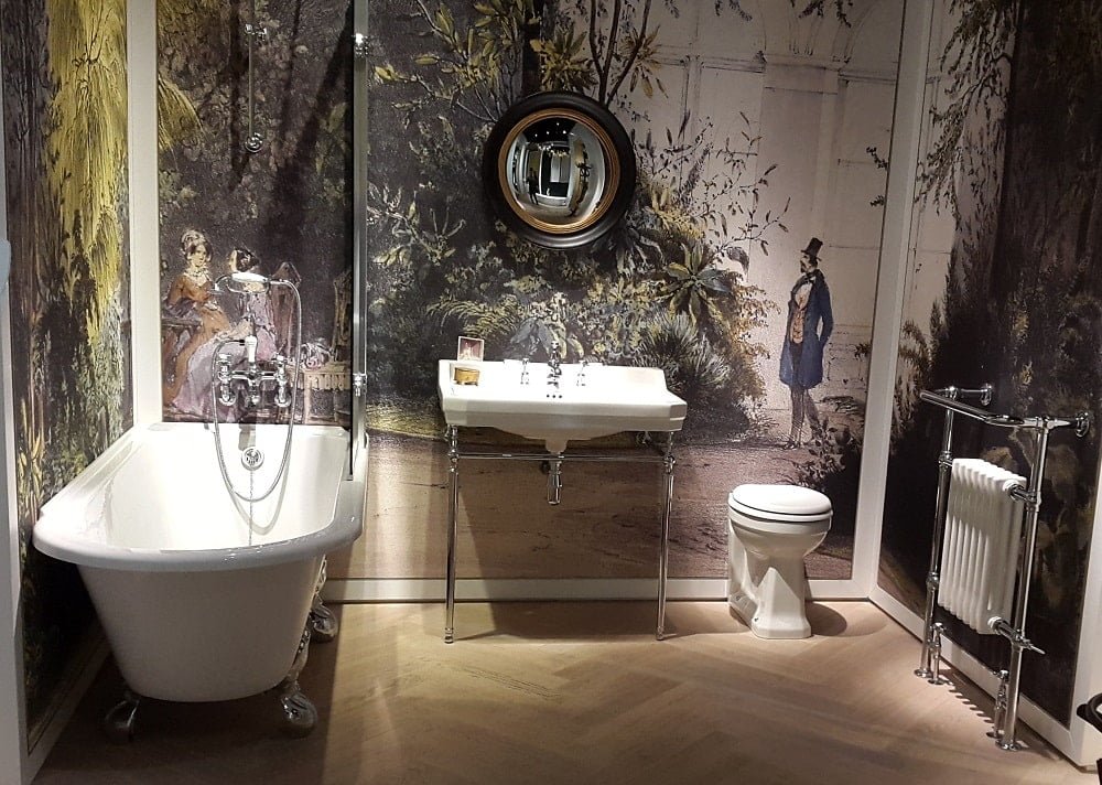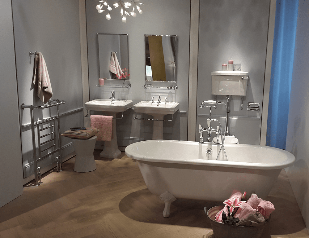 Burlington Bathrooms ekspozicija. Šių produktų gimtojoje šalyje – Anglijoje.