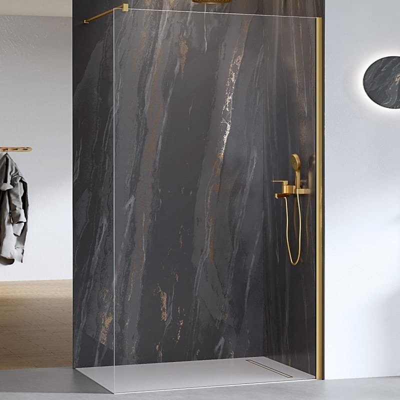 Klasikinės formos, smulkus detalių apdirbimas, klasikinių aksesuarų naudojimas, bet ir moderniausios medžiagos – visa tai suteikia maksimalų komfortą vonios kambaryje. Šoninė sienelė gali būti derinama su besisukančiomis arba stumdomomis durimis. Tokiu būdu gausite kvadratinius arba stačiakampius bronzinio dizaino ekranus. Platus matmenų pasirinkimas: 80x80cm, 90x90cm, 100x100cm. Spalvos: profilis - žalvario spalvos, stiklas - skaidrus.  Gamintojas "Gelco" (Čekija).